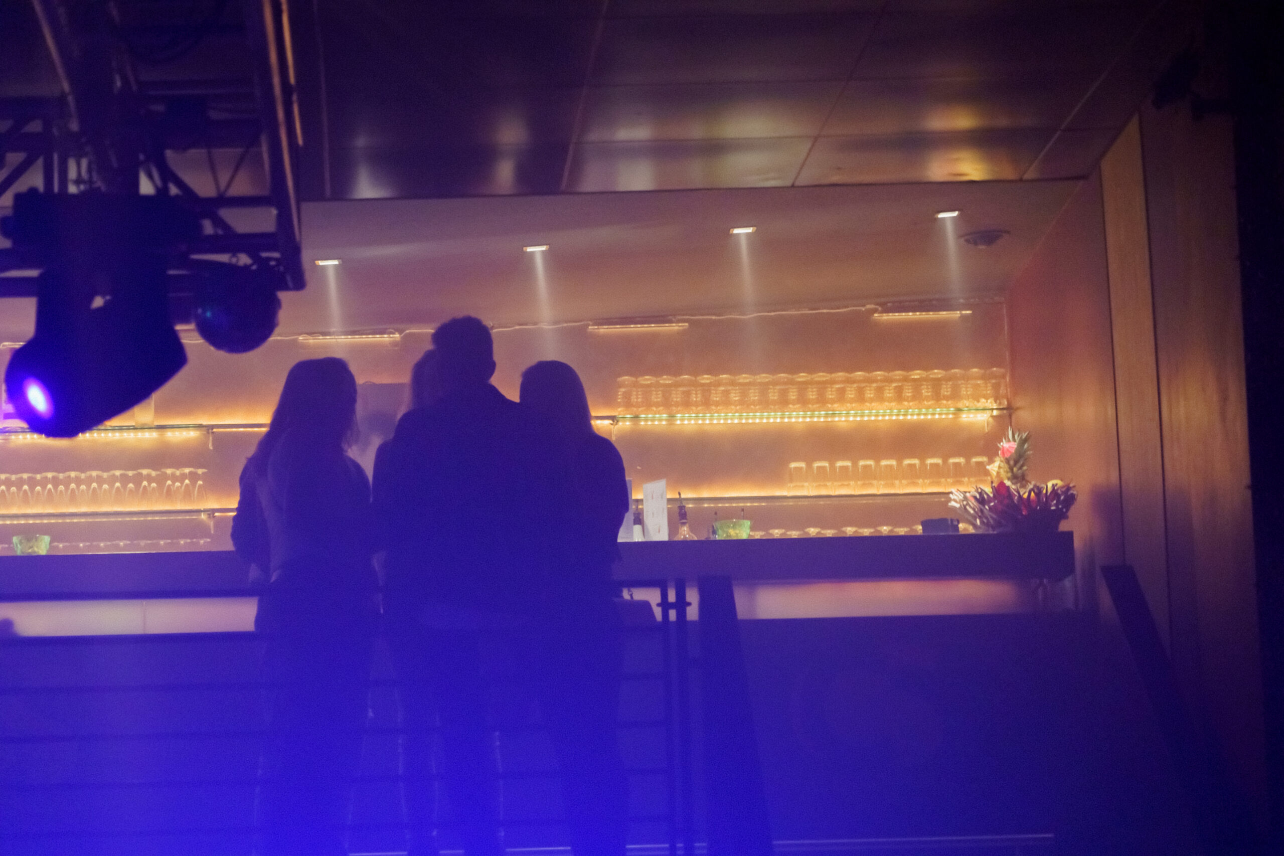 Kleine Party in der Lounge mit Bar, Kühlraum, Eingangsbereich und Garderobe.